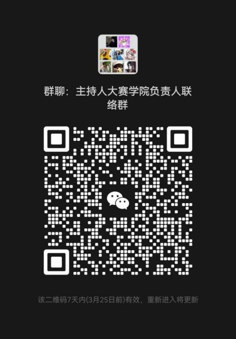 3.各学院学生会负责文艺工作的学生联络人于3月20日前加入主持人大赛工作联络群,并备注好学院及姓名。拟定于3月21日20:40在线上召开各学院学生联络人会议进行具体部署。
