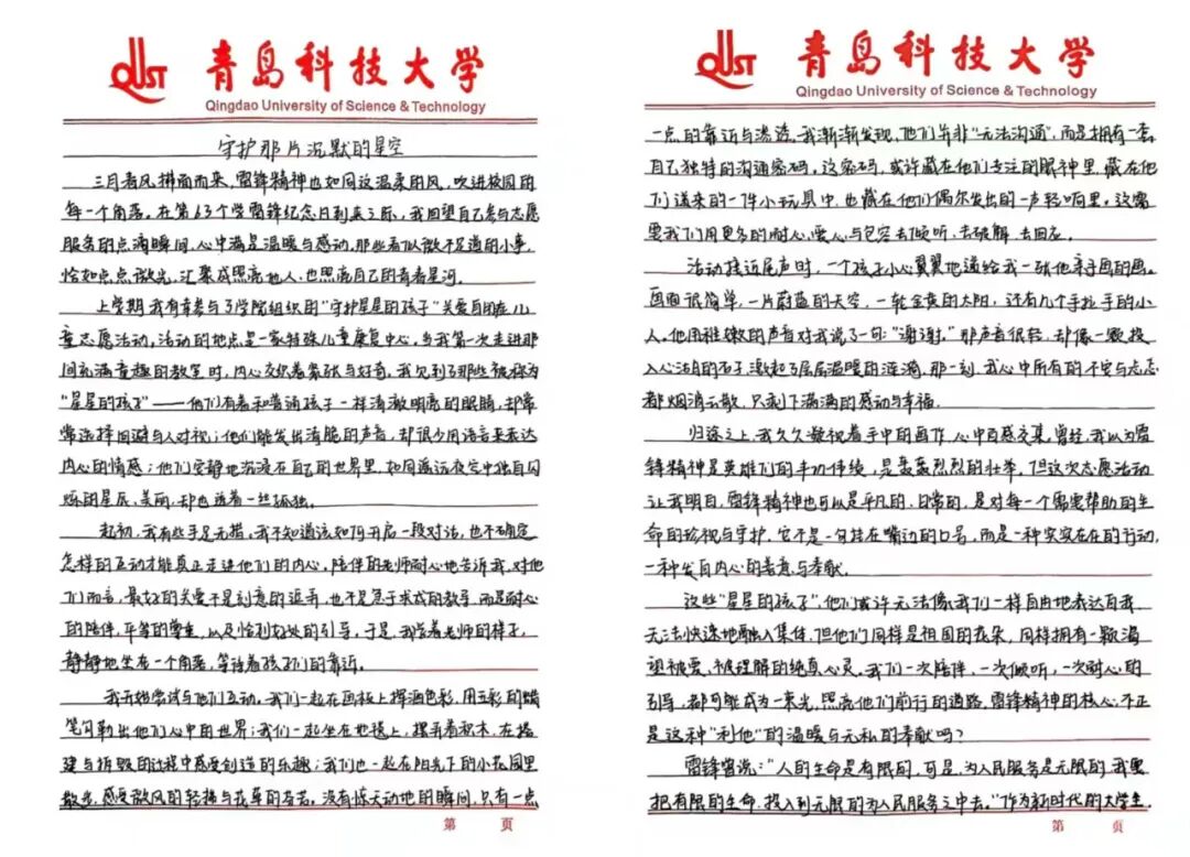 笔墨传情悟精神。以笔墨为载体,积极开展“雷锋月里话青春”主题征文活动,通过鼓励学生结合自身感悟书写雷锋精神的时代内涵,让红色精神在笔墨流转中浸润心灵,厚植崇德向善的思想根基。