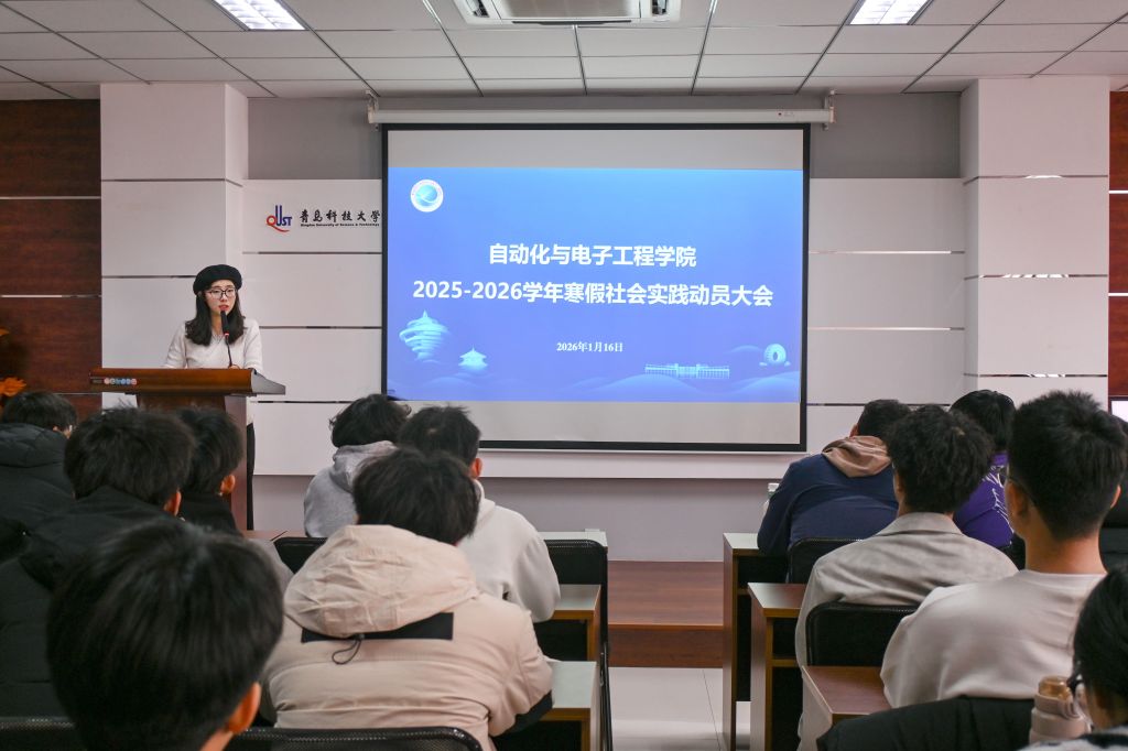 丁雅琼对本次寒假社会实践工作作出全面部署,并向全体参会学生及班委提出四点希望与要求。一是提高认识,主动参与。希望各班班委充分发挥先锋带头作用,深刻领会寒假社会实践的育人价值,积极动员班级同学投身实践,科学规划实践内容,确保实践活动有序开展、学有所获。二是立足专业,突出实效。鼓励同学们紧扣国家大政方针、社会热点及学校重点工作,结合学院自动化、电子工程等专业特色,将社会实践与科技创新、志愿服务、基层治理、乡村振兴等领域深度融合;聚焦学院“ai同心环”社会实践项目,以赋能产业智驱力为核心抓手,推动人工智能技术与产业发展深度融合,构建“人才培育—技术落地—产业升级—发展研判”的完整实践链路,实现技术赋能覆盖教育帮扶、技术攻坚、产业提质、行业调研等多元场景,切实将专业优势转化为服务产业发展的实际效能,持续提升实践活动的内涵与质量。三是注重总结,强化宣传。鼓励同学们做好实践全过程记录,认真撰写调研报告,全面梳理实践成果与心得感悟;主动运用短视频、推文等新媒体载体,分享实践故事,展现青科学子扎根基层、勇于担当的精神风貌,营造全员参与、积极向上的实践氛围。四是严守底线,保障安全。着重强调全体同学务必将自身健康和生命安全置于首位,主动学习安全知识,增强风险防范意识,重点防范极端天气、交通出行、传销诈骗等各类安全隐患。各班需组织召开专题安全教育会,统一签署《青岛科技大学寒假社会实践活动安全责任承诺书》,实践团队队长要切实履行牵头职责,全程做好团队成员人身、财产及意识形态安全保障工作,确保实践活动平安顺利、圆满完成。